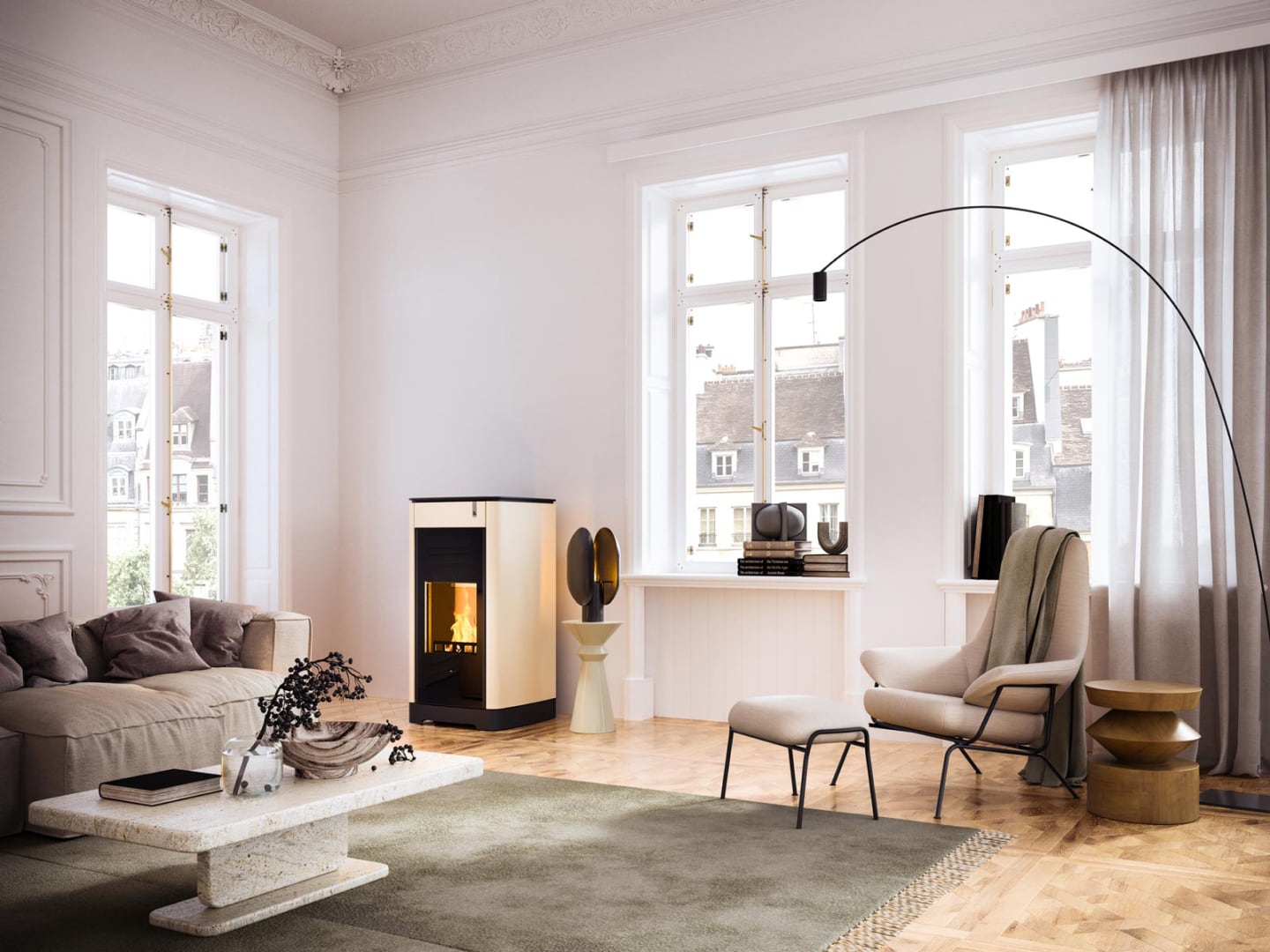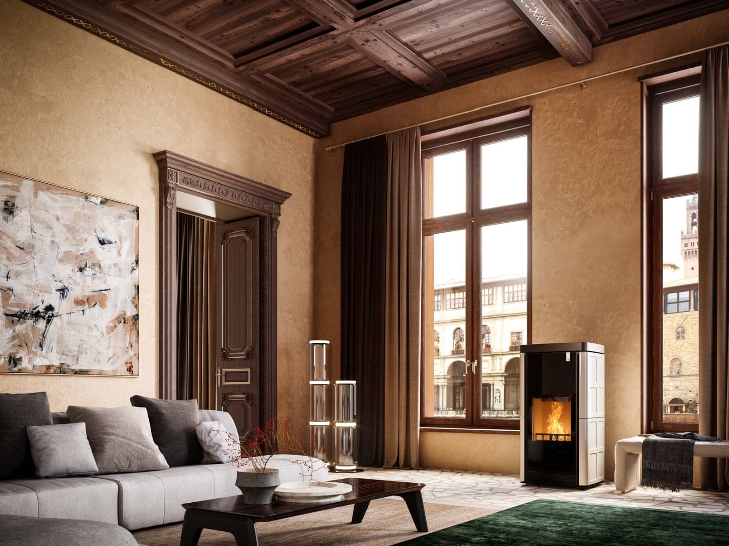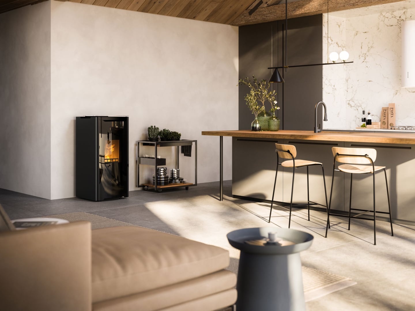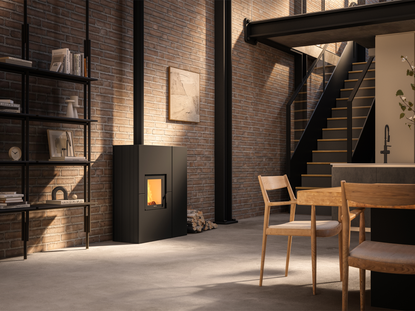 Con i nostri sistemi ibridi, la stufa o il termocamino alterna automaticamente combustibili per un calore continuo e omogeneo.